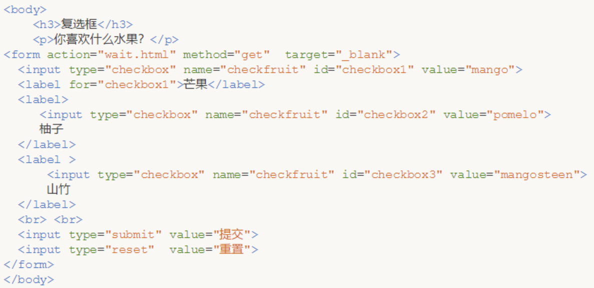 (5)如果每个复选框的name属性都设置为同一个值,则它们被认为是一组复选框,同一组复选框中可以同时选中多个。