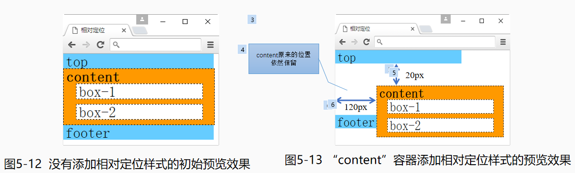 通过设置top、bottom、left、right的值,使容器相对于它的原始位置进行移动,而该容器的原始位置的空间仍然保留。