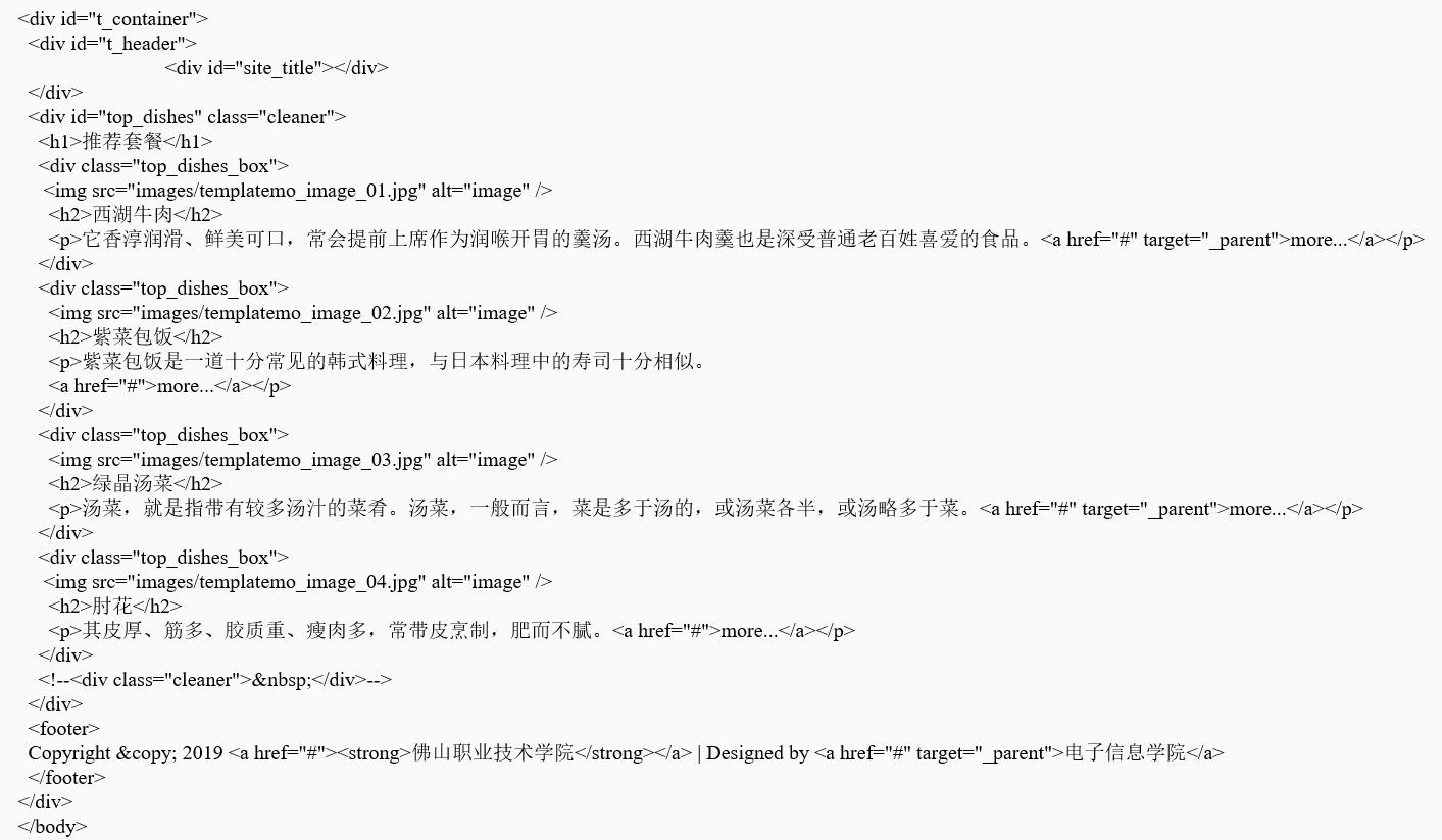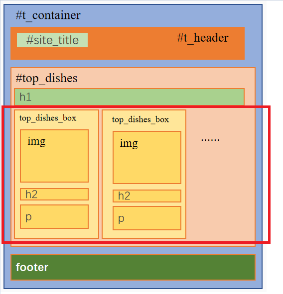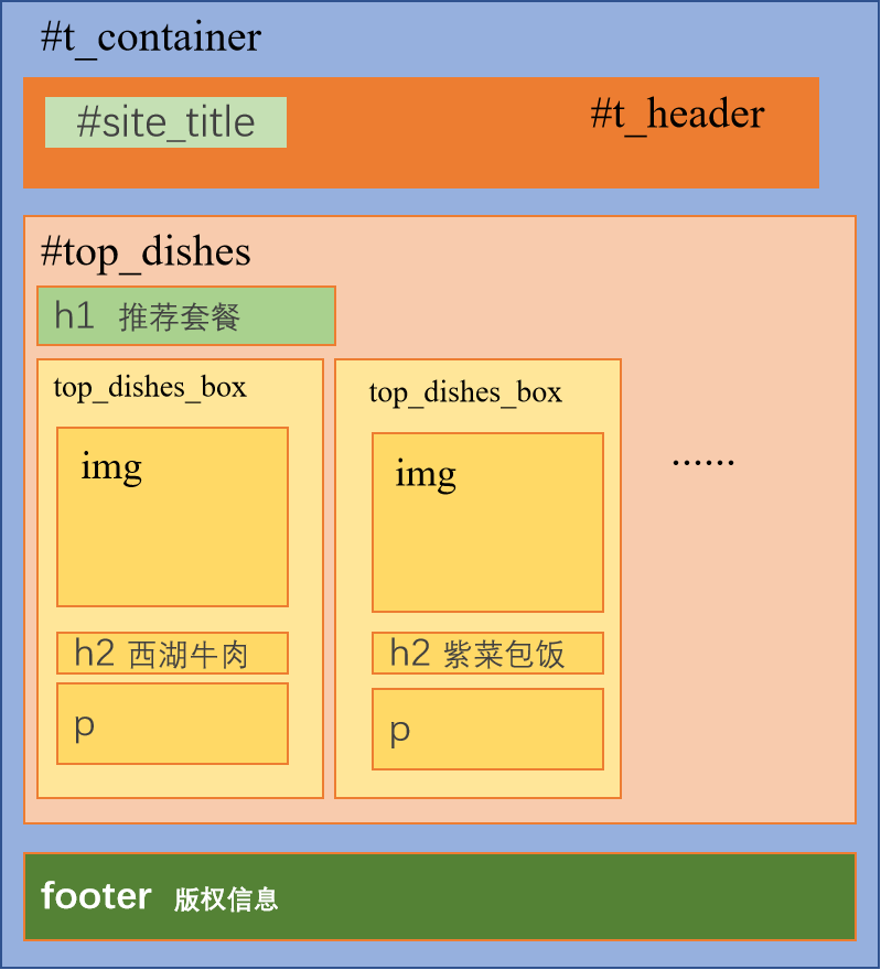 3、创建空白文档,并根据布局图创建具有层次关系的结构代码(各类容器,只用一次的样式用id,使用多次的用class)