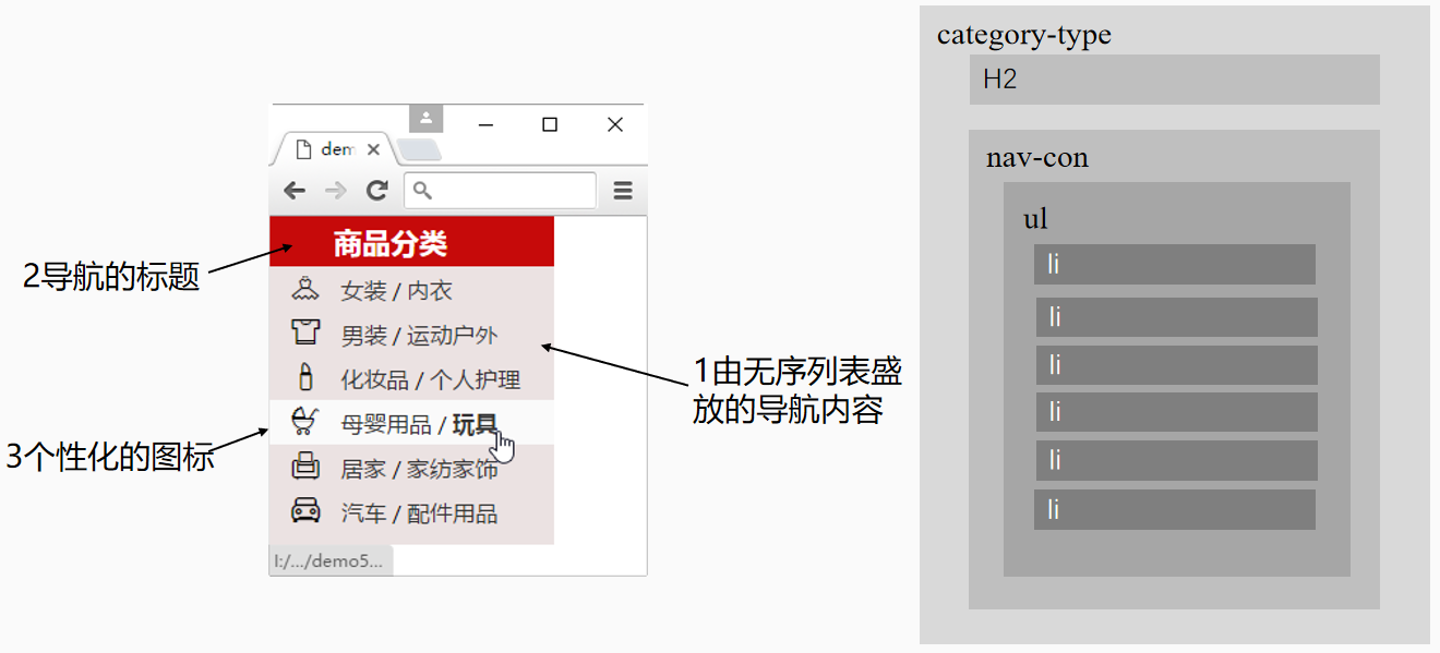 三、按照制作网页的步骤,制作仿天猫纵向导航栏
