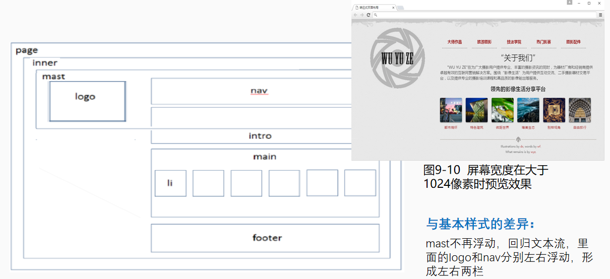 /*因为前面ipad竖屏时设置的条件max-width:768px时的样式(清除所有重要板块的浮动属性)在这时依然有效,所以这里不需要再设置重要板块的浮动属性*/ 难点