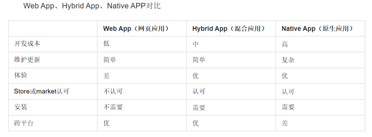 目前,移动应用前端开发模式有Native App(原生APP)、Web App,以及由前两种开发模式融合后的Hybrid App(混合模式)。
