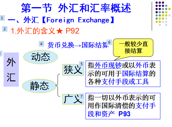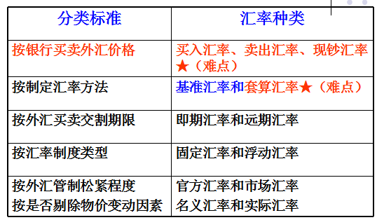 6.按照是否剔除物价变动因素分为:名义汇率和实际汇率 【难点 了解】