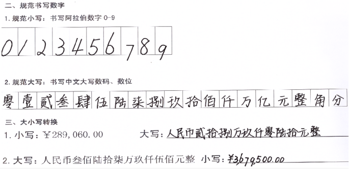 会计数字的书写技能
