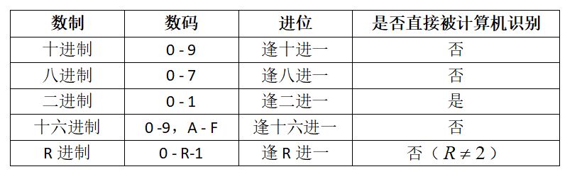 Tips:表格中的R进制即任意一个进制,R是一个大于1的整数。