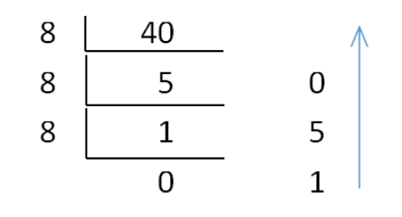 例如将十进制整数40转换为对应八进制: