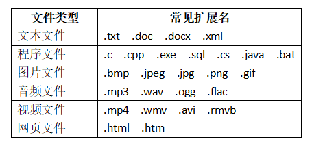 不同的文件可分为不同的种类,通常可以将文件分为文本文件、程序文件、图片文件、音频文件、视频文件、动画文件等等。不同的文件包含不同的后缀名。
