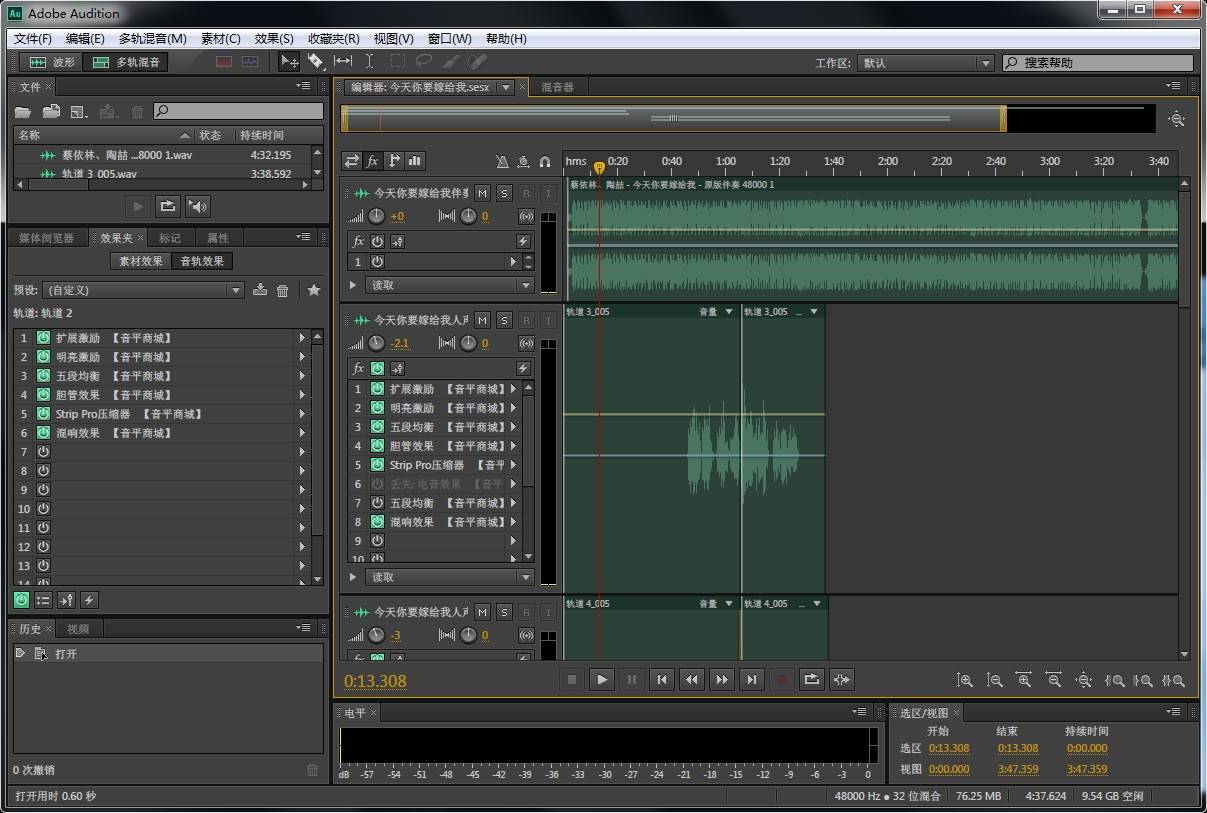 具有一定的工作站能力,能完成从音频的录制、编辑和发布的整体步骤,入门相对比较简单,支持多个音频轨道。