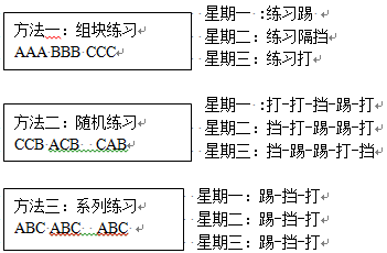 组块练习是在多任务的练习过程中,一项任务全部完成后,再进行下一个任务练习的方式。