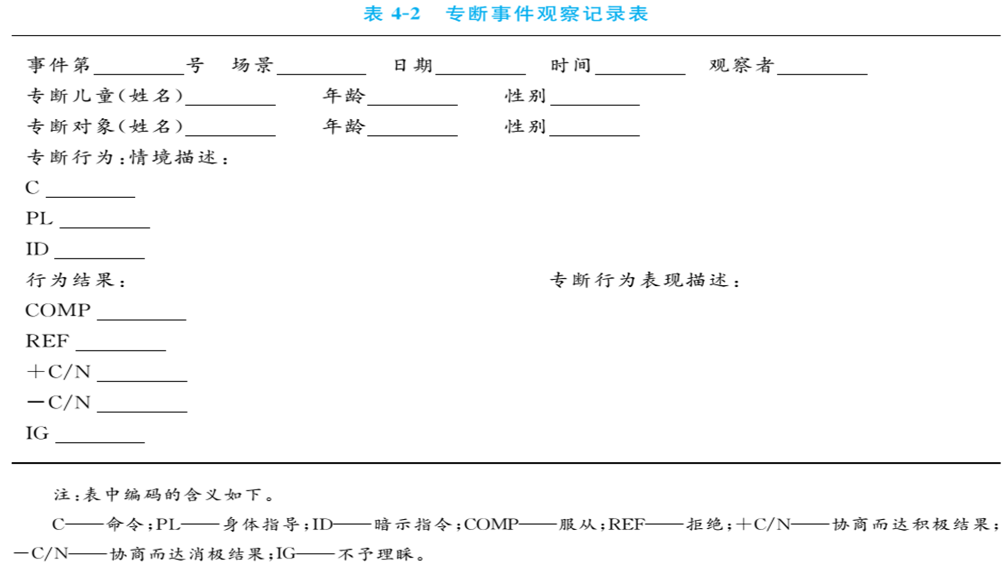 专断事件观察记录表见表4-2。
