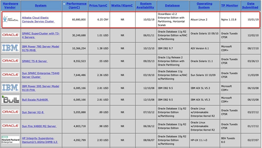 10月2日,据权威机构国际事务处理性能委员会(TPC,Transaction Processing Performance Council)官网披露,中国蚂蚁金服自主研发的金融级分布式关系数据库OceanBase,在被誉为“数据库领域世界杯”的TPC-C基准测 试中,打破了由美国公司Oracle(甲骨文)保持了9年之久的世界记录,成为首个登顶该榜单的中国数据库产品。