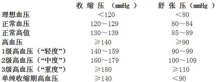 注:若收缩压与舒张压分属不同级别时,则以较高的分级为准。