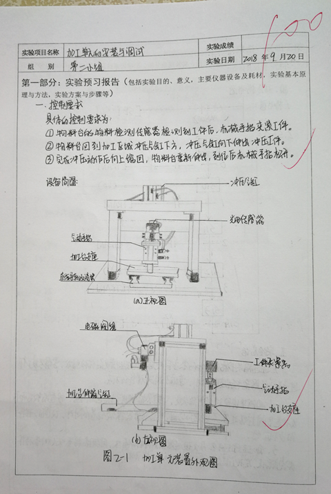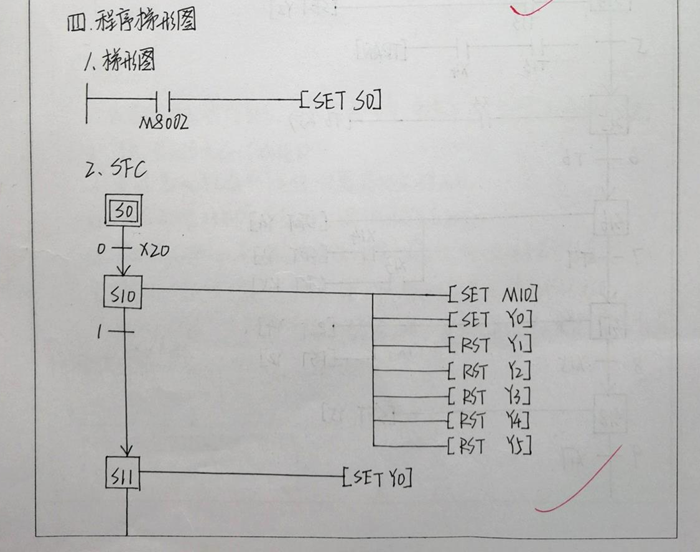 (2)设备简图、硬件接线图使  用铅笔、尺子绘制;IO分配表、程序使用尺子绘制。