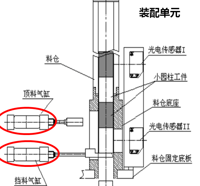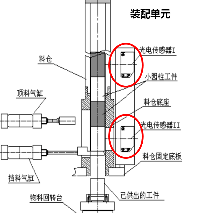 装配单元的接近开关共有4个,安装位置如图5-10、5-11所示。