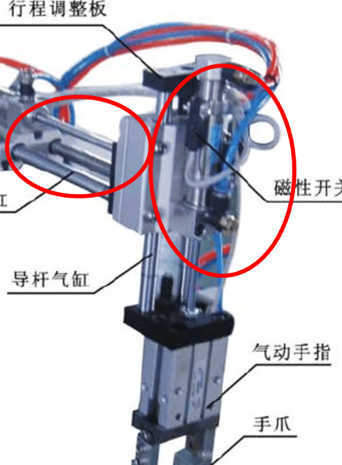 装配单元的DZ-73型号磁性开关共有3个,安装位置如图5-16、5-17所示。