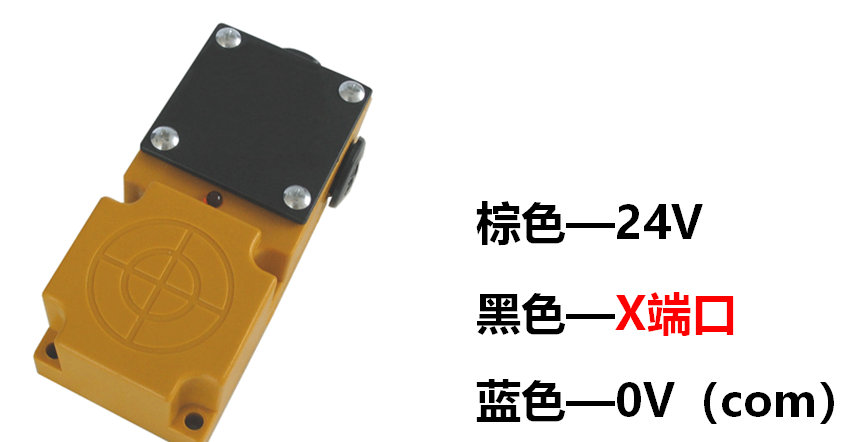 综上所述,两线的接近开关(磁性传感器),将其棕色线接入X模块中间排的X端口,蓝线接入X模块下排的GND端口。