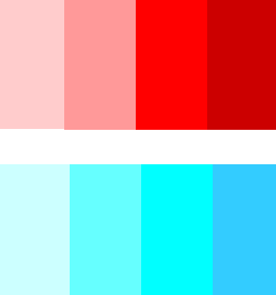 色彩的轻重、前进和后退:亮度偏高的颜色看起来轻,往前跳;亮度偏低的颜色看起来重,往后退。