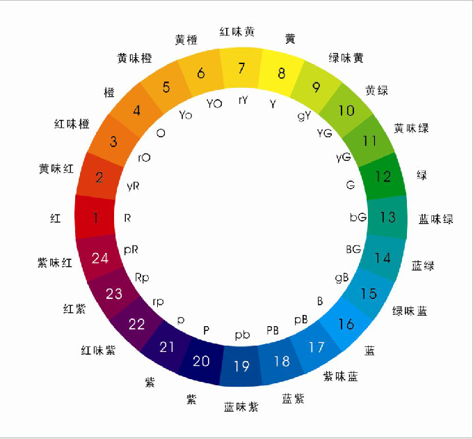 色彩的对比:在整个色相环上,不同颜色之间形成一定的对比关系——色相对比、明度对比、纯度对比,同一色系中的不同颜色存在一定的对比关系——明度对比、纯度对比。
