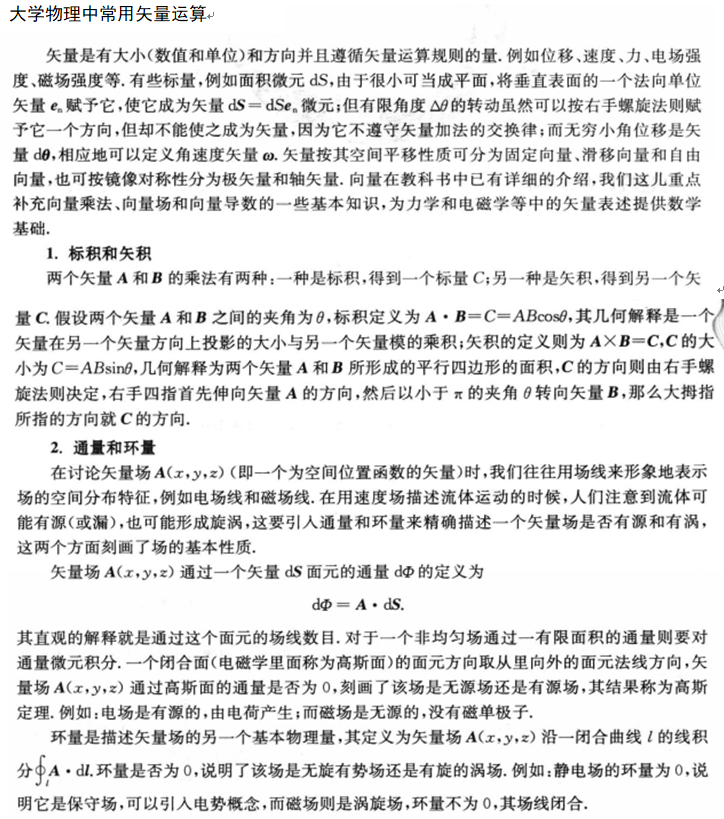 大学物理中的矢量数学