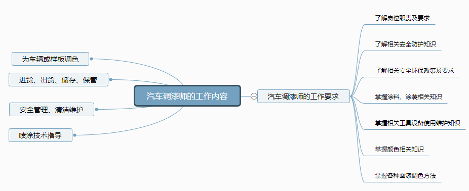 学习目标:能描述汽车调漆师的工作内容和要求。
