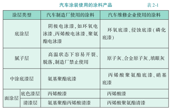 2.汽车涂料:制造涂装与维修涂装所选用的涂料区别