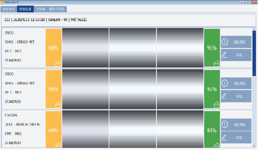 注意:通过测色仪获得颜色代码或颜色配方的方法一般比较准确,对于没有任何车辆颜色信息或色卡资料的情况比较适用。