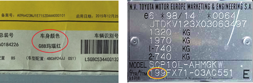 注意:通过此种方法获得的颜色代码所代表的颜色是汽车生产时的颜色,适合颜色信息准确,车辆较新时的情况。