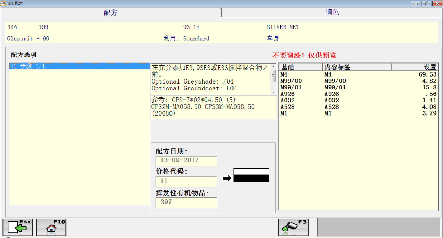 查找颜色配方