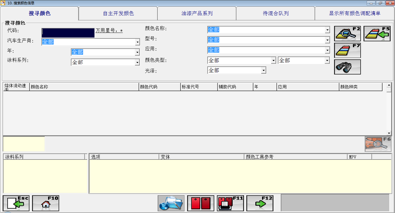 ②点击“配方”按钮,弹出“搜索颜色信息”页面。