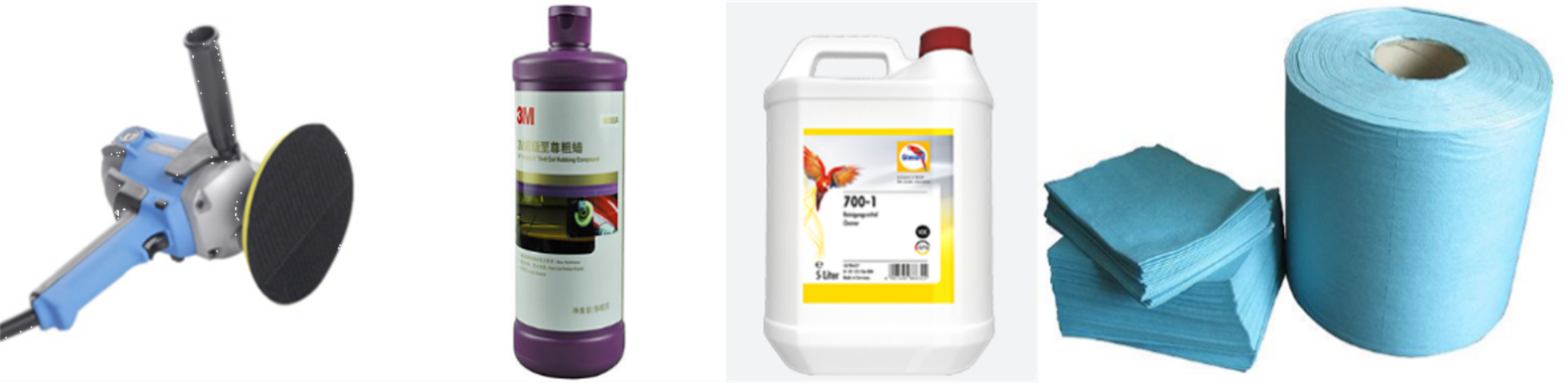 其次,我们再看看还需要准备哪些工具设备。在查找配方任务中,还需要用到的工具材料有抛光机、抛光蜡、清洁剂、擦拭布等。