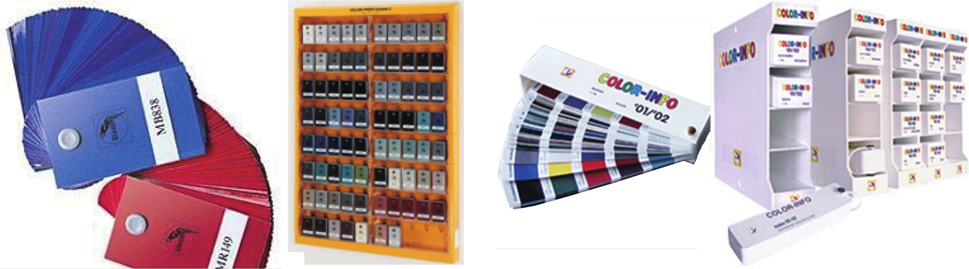 色卡是根据不同的颜色配方做出来的颜色卡片。通过色卡,可以直观的看出涂料颜色的属性及相关信息。色卡的分类一般采用两种方式:一种是按照色系来分,如红色系、黄色系、蓝色系等;还有一种是按汽车厂商来分,如奔驰、宝马、奥迪等.