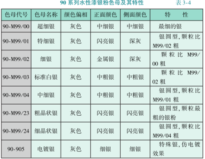 金属漆中使用的纯色色母一般与单组分纯色漆调色色母共用,金属颜料色母主要是银粉色母,由于银粉颗粒大小和形状不同,形成涂膜闪光效果的差别也非常大。