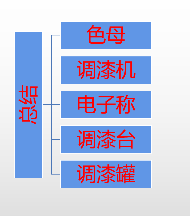 汽车维修厂一旦选择了某一品牌的汽车修补涂料,不宜频繁更换。因为改换品牌,不但会浪费剩余的色母和涂料,而且还会损失多年积累的调色经验和资料。在调色前要确保色母种类齐全,数量够用。