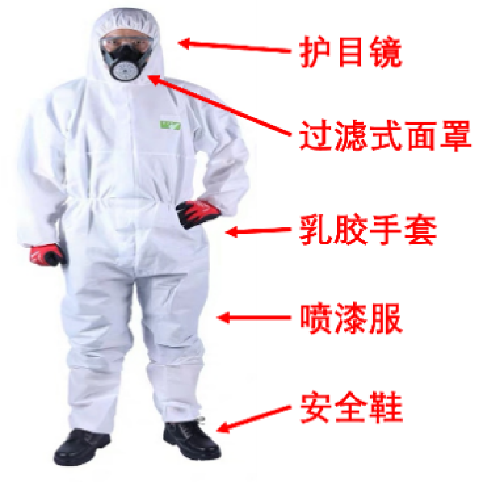 计量调色时会接触到涂料,因此需要穿戴好护目镜、过滤式面罩、乳胶手套、喷漆服、安全鞋等。