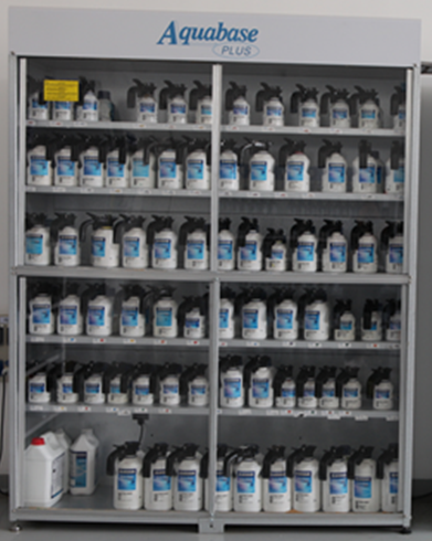 ③将搅拌桨盖安装到新的色母罐上,对准后压紧锁止。为方便取用,要将外包装上的型号标签统一朝向外侧。同时,整套色母要按照编号有序摆放,以方便取用。