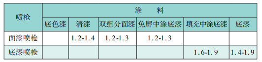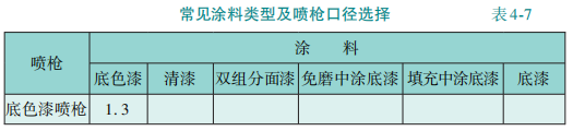 喷涂不同类型的涂料要选择相应类型的喷枪及合适的口径。常见涂料类型及喷枪口径选择可以参考下表。