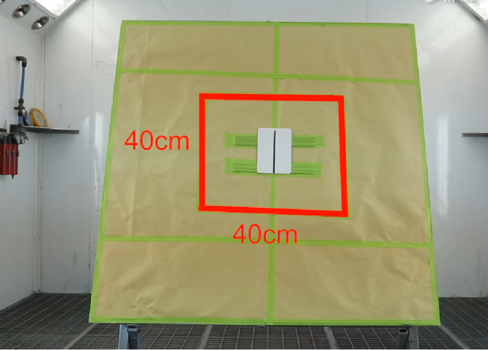 ②将试板固定及除油。将试板粘贴在喷涂架或喷涂板上,要确保试板喷涂时不会晃动,同时也要考虑喷涂完后易拿取。然后用除油剂擦拭干净表面,并粘尘。