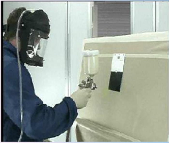 喷涂法就是将调配好的涂料按规范操作,喷涂到试板上再与目标颜色进行对比的方法,