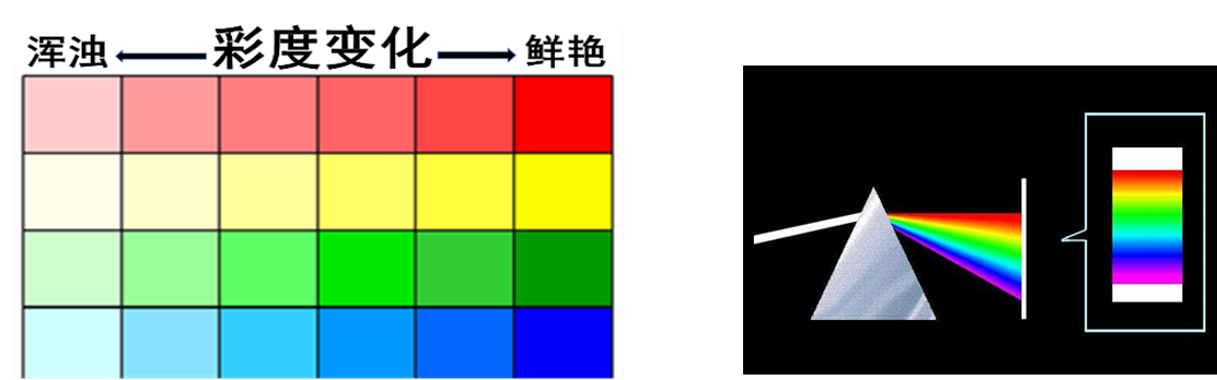 彩度是颜色在心理上的纯度感觉。在可见光谱中各种单色光是最纯的颜色,为极限纯度。