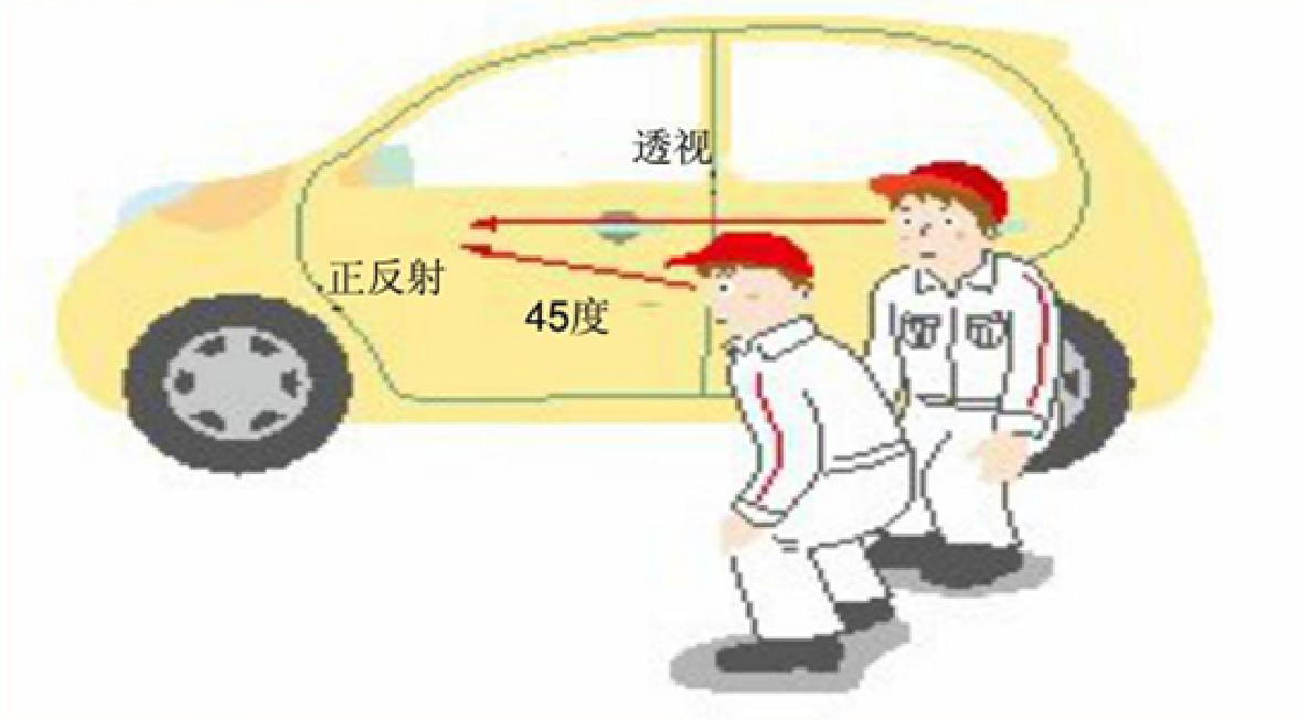 如果是实车,可以采用如图所示角度及方法进行比对。