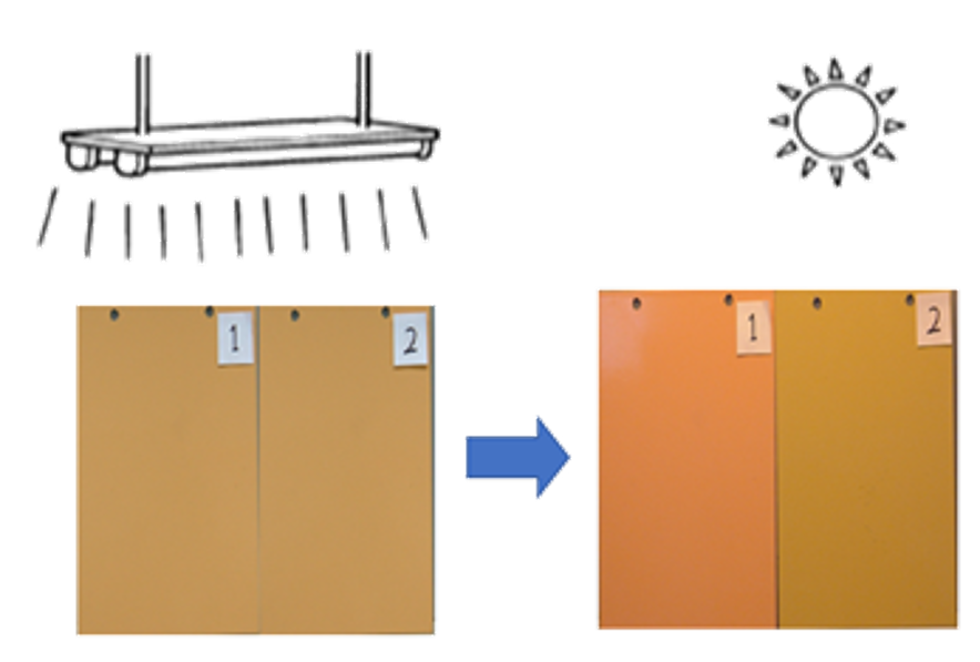 为了避免出现同色异谱现象,可以用太阳光、D65光源观察后,再用其它光源进行检验。在调色时,添加了配方之外的色母也容易出现同色异谱现象。