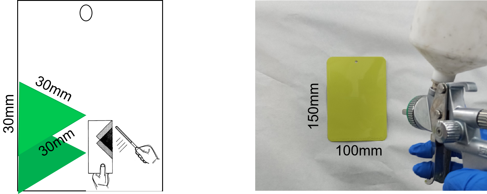 目前,汽车制造涂装和汽车维修涂装涂层都是采用的喷涂法,所以采用喷涂法制作颜色试板进行比对是最为合适的方法。
