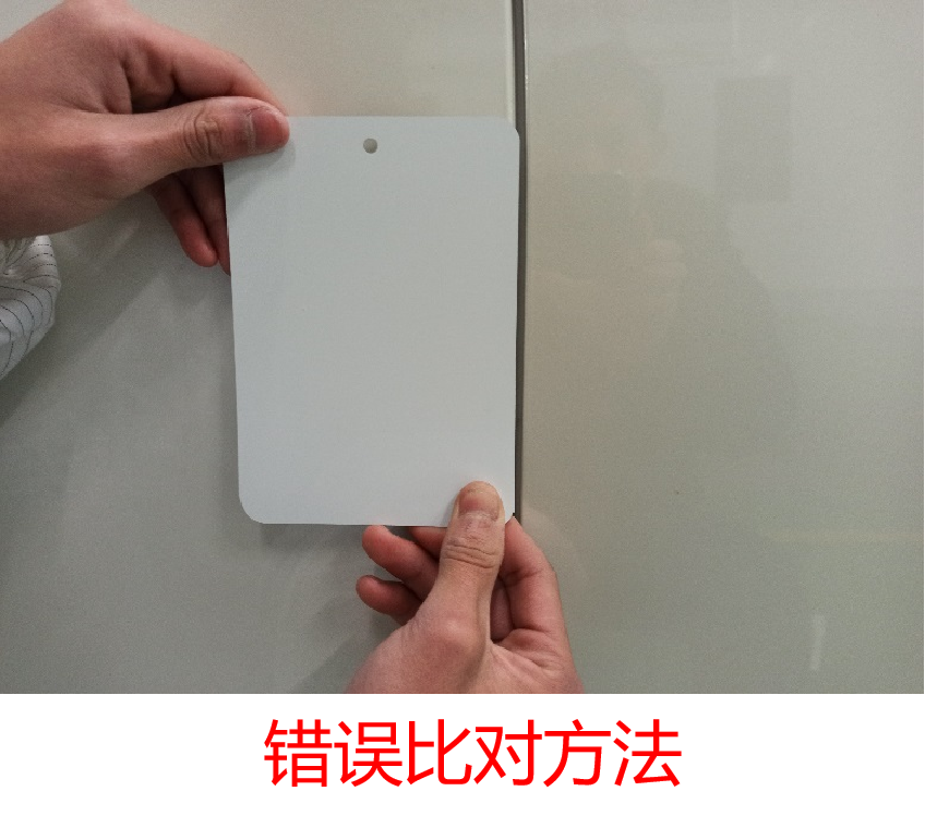 (5)选择合适的比对角度。颜色比对时,试板与目标板要并放或叠放在一起,中间不留缝隙。