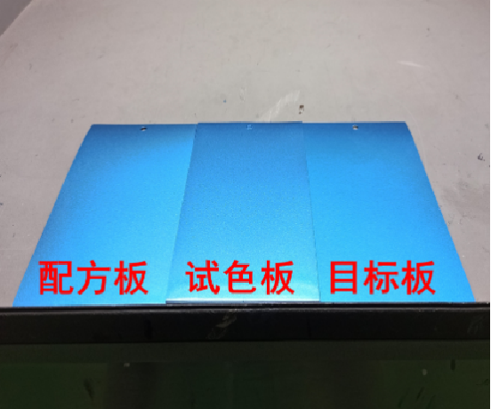 第二次添加时,主要目的是将颜色微调一致。我们可以将配方板、试验板、目标板依次摆放,然后通过查看试验板与配方板、目标板的颜色差异程度,以及在第一次添加量的基础上来分析估算第二次的量。