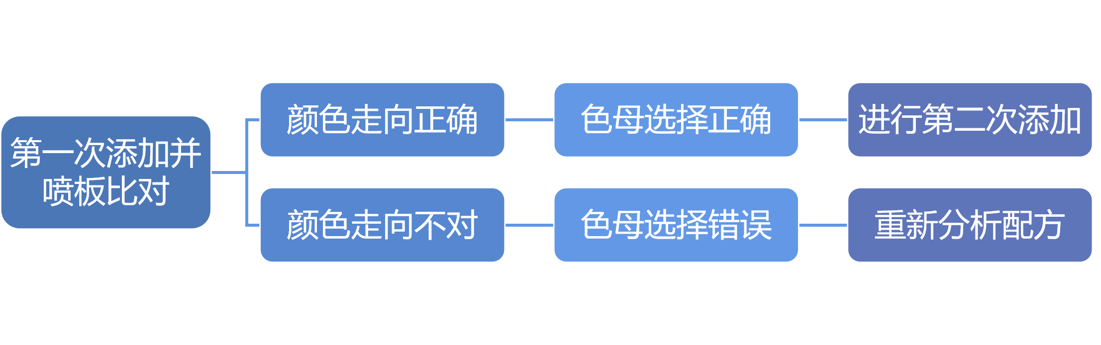 根据经验,一般建议分成2~3次添加,第一次添加时,主要目的是检验所选择的微调色母是否正确,添加量不宜太大。
