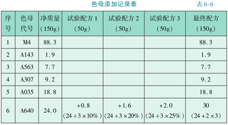 学习目标:掌握色母添加的方法。
