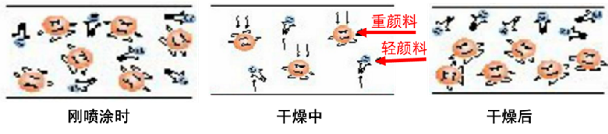(4)注意涂料的干湿颜色差异。涂料中的颜料比重各不相同,白色颜料和某些黄色颜料比重较大,由于颜料的沉降效果,刚喷涂的涂料颜色会显得浅(亮)一些,干燥后的涂料颜色会显得深(暗)一点。所以在微调时,一是可以让湿涂料颜色比目标板稍浅一点;二是试色板必须烘烤干燥后才能进行对比。