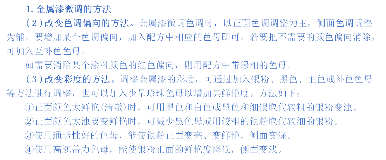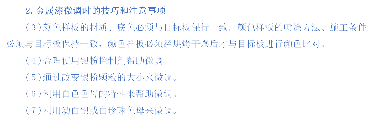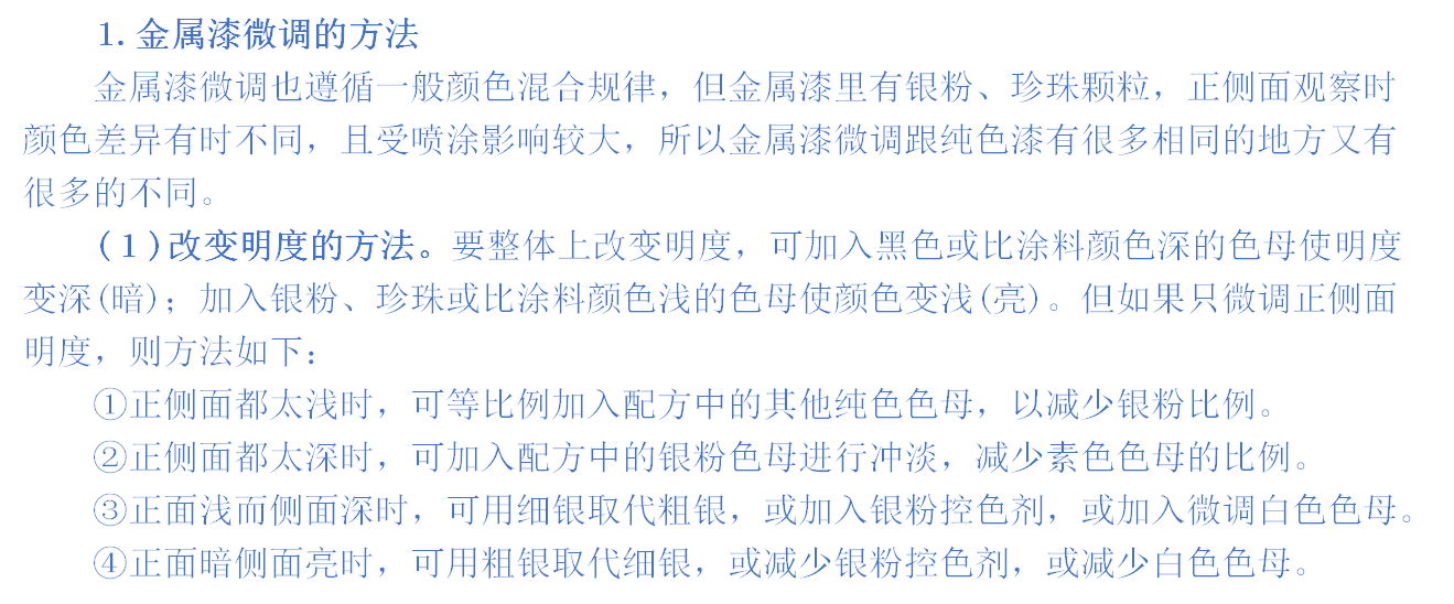 金属漆颜色微调方法