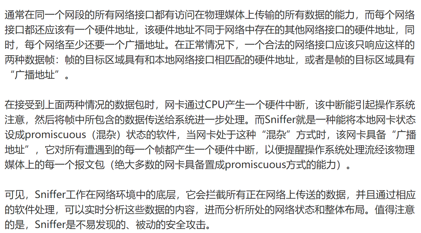 网络嗅探的基本工作原理