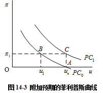 在图14-3中,我们假定经济最初处于的菲利普斯曲线与横轴相交的